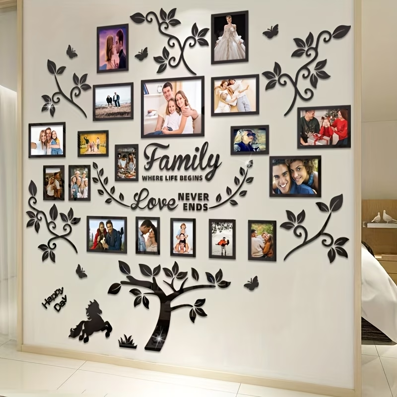 Cadre photo en acrylique avec motif arbre et gabarit pour photos suspendues, décoration intérieure, design auto-adhésif, facile à installer
