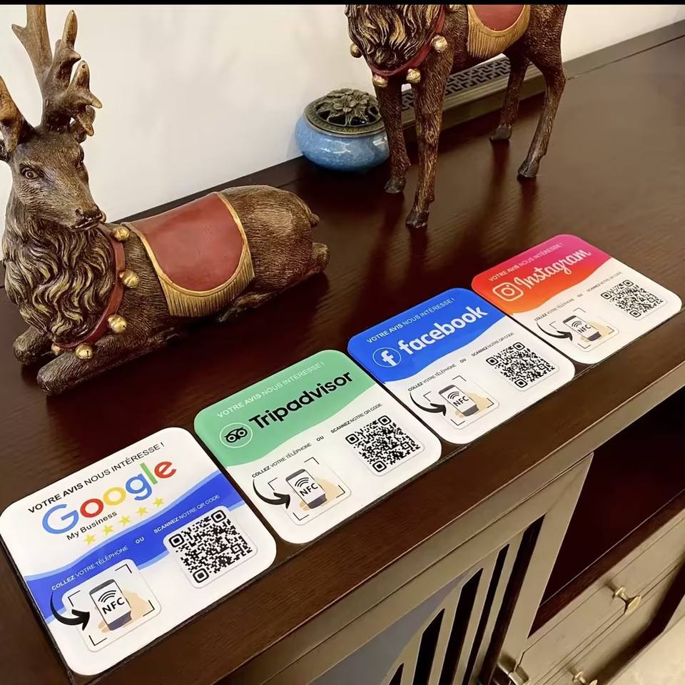 Signe de code QR en acrylique Examen social Obtenez plus d'avis positifs NFC Touch pour votre entreprise Magasins de détail Boutique de médias sociaux
