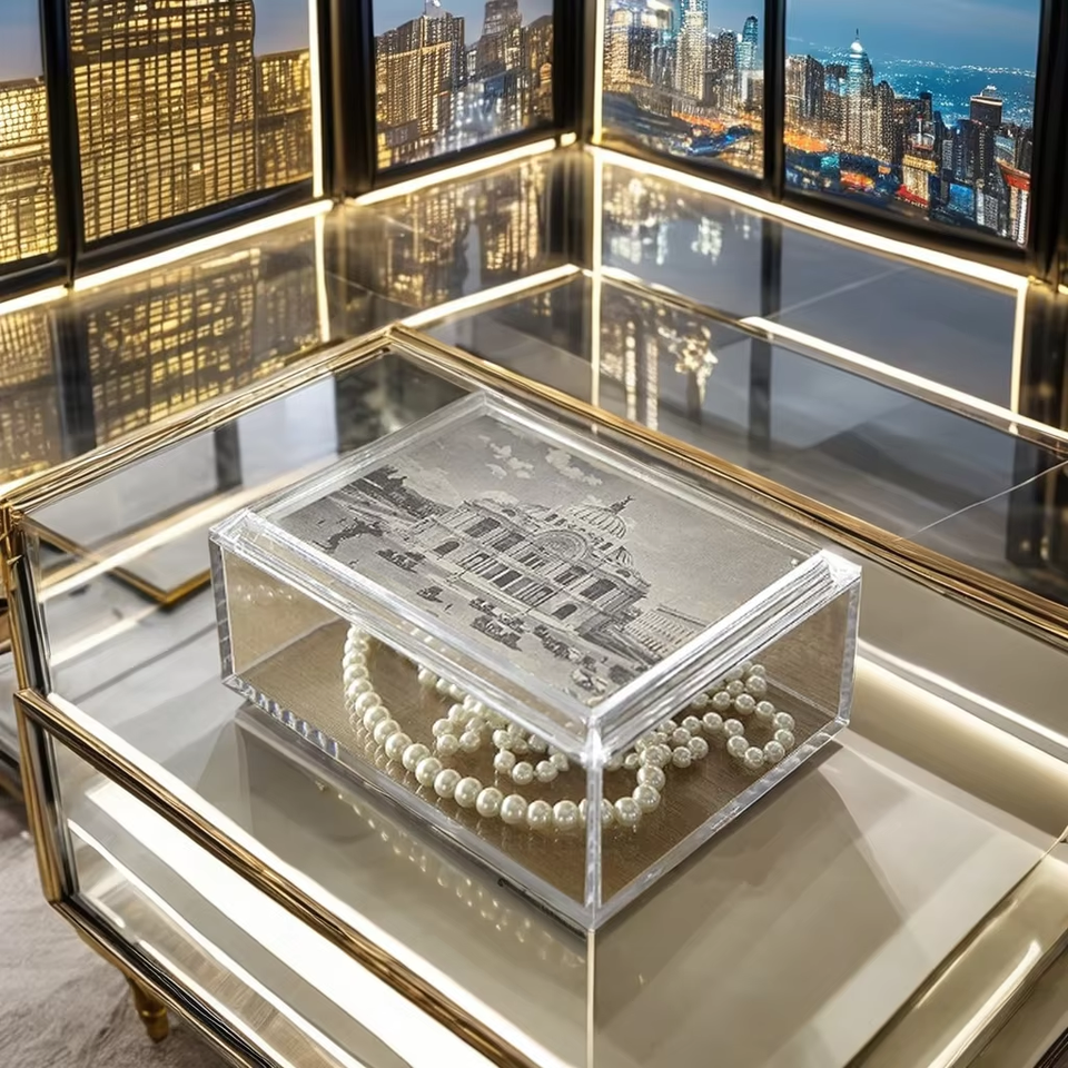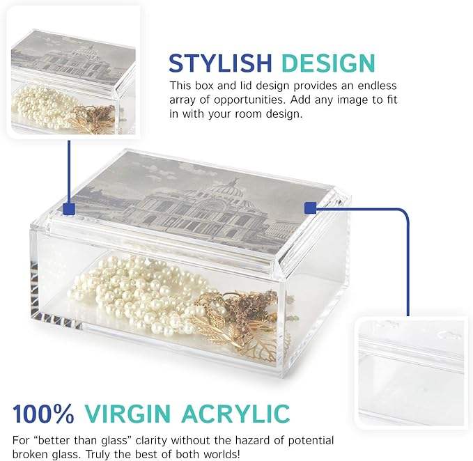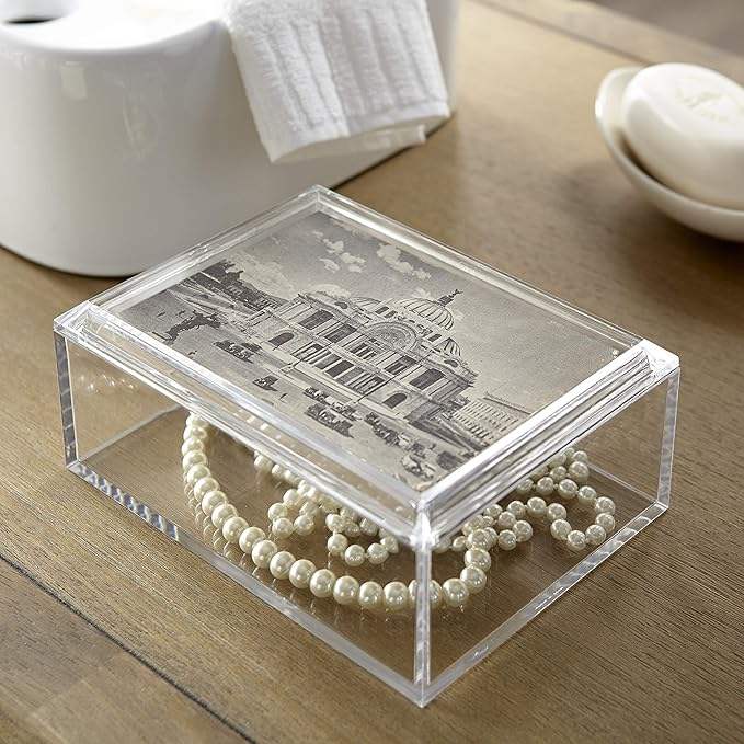 Boîte à bijoux rectangulaire en acrylique avec couvercle photo de style moderne 5 "x 7" stockage polyvalent pour les magasins de détail bijoux Keekes bibelots