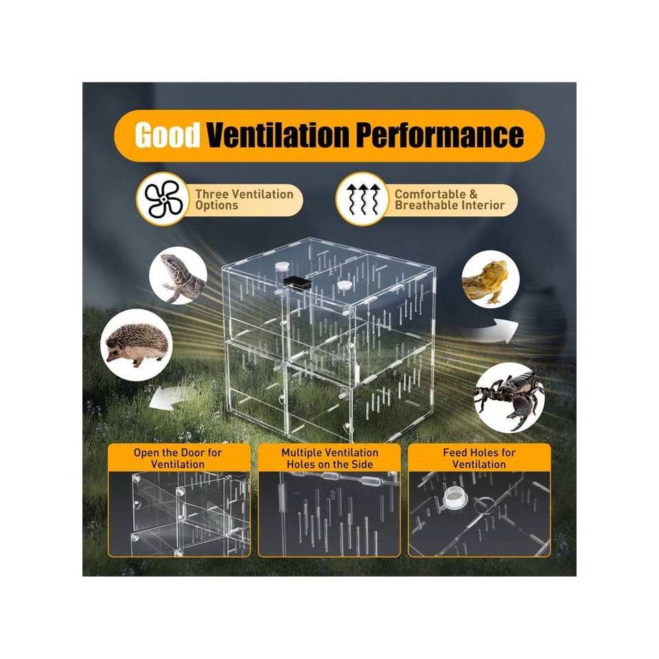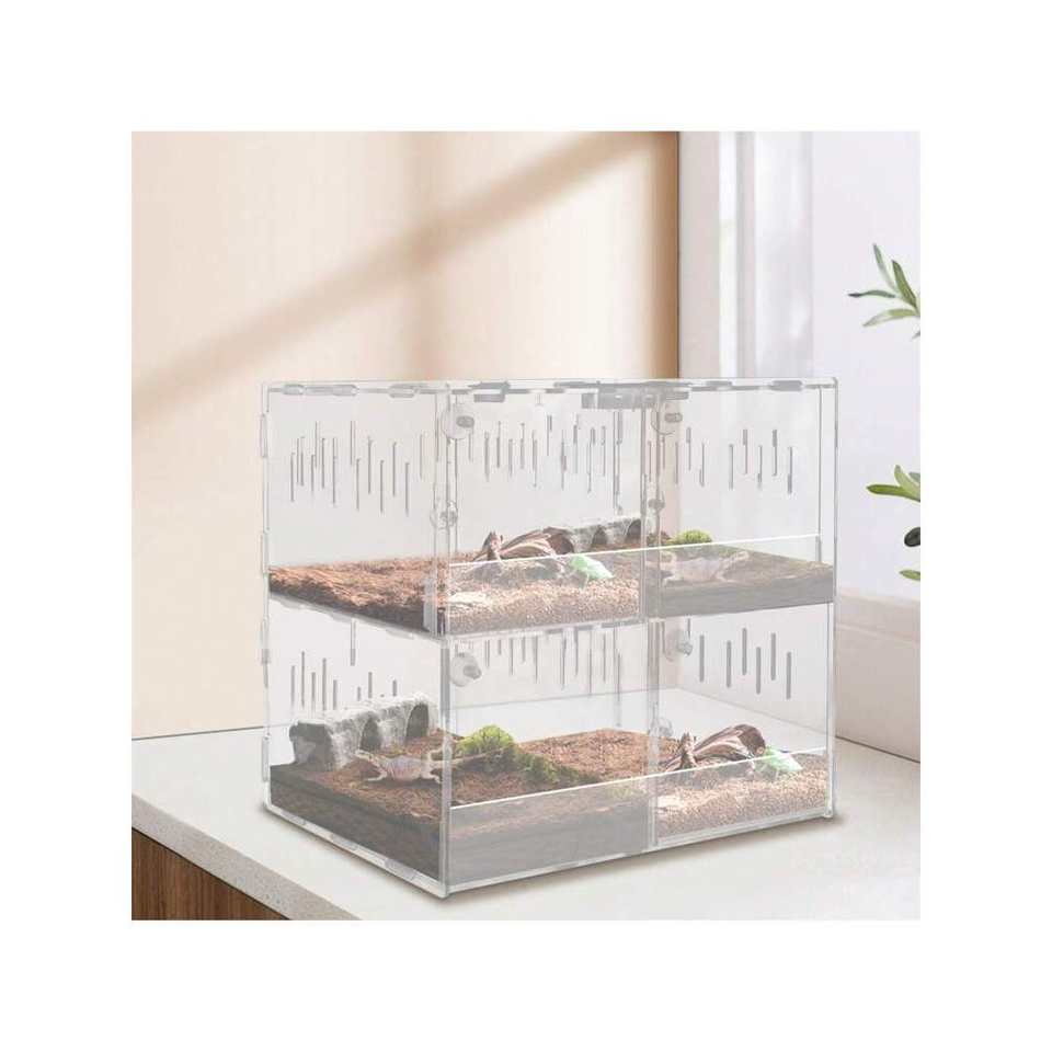 Terrarium de reptile acrylique visuellement attrayant Cage d'habitat à vue complète Réservoir de reptile transparent comportant des plantes artificielles