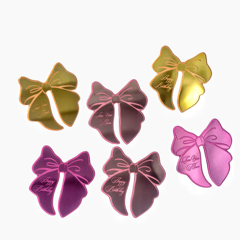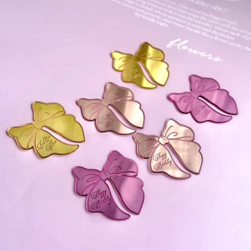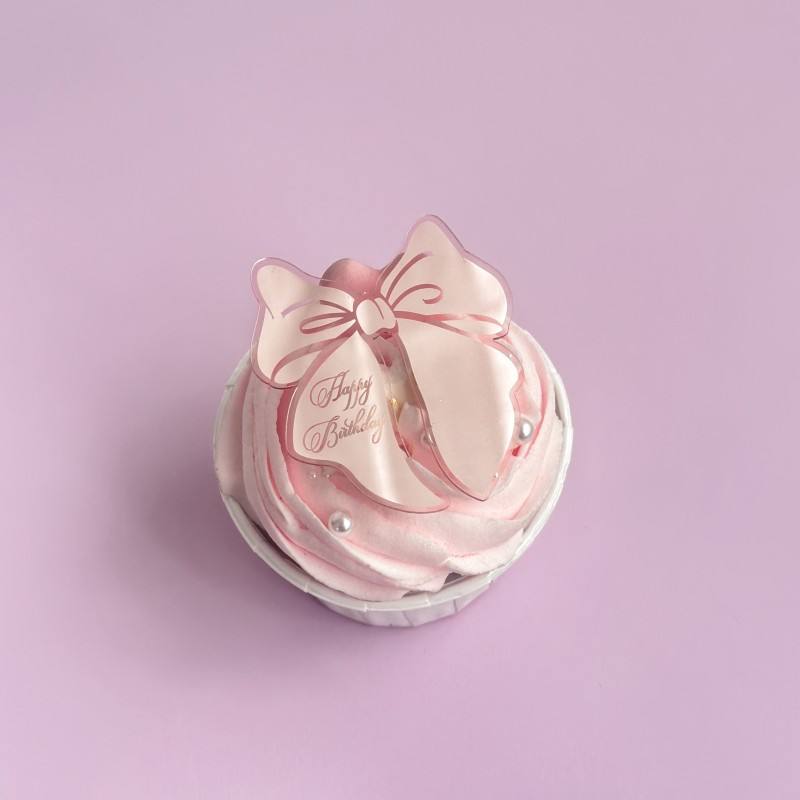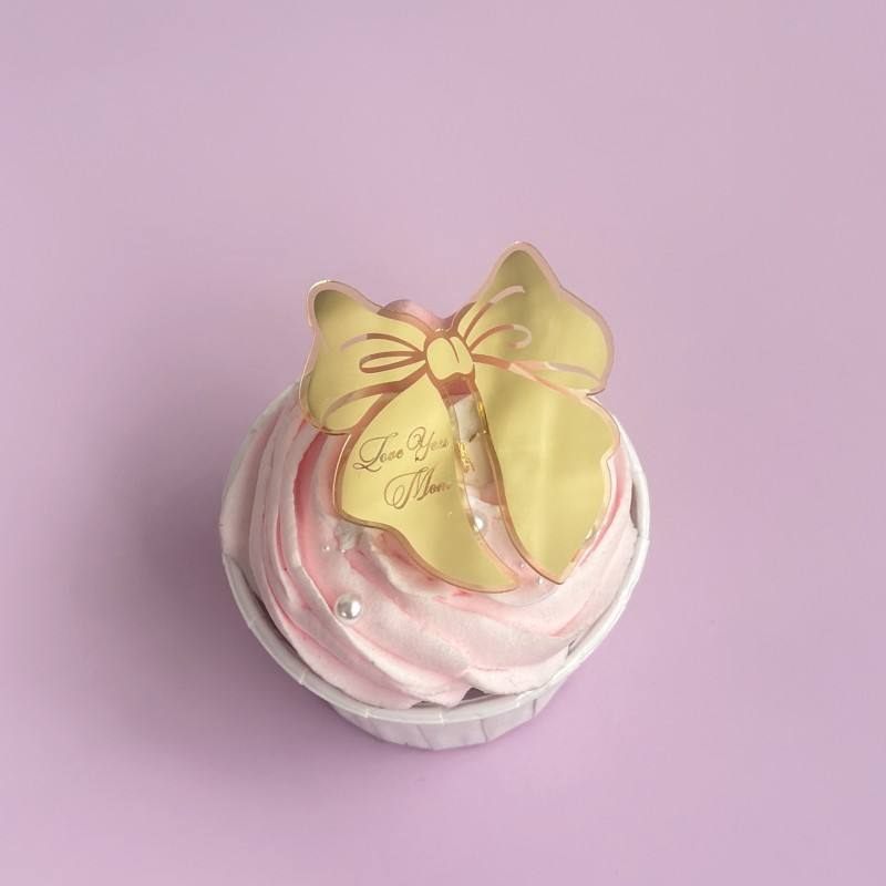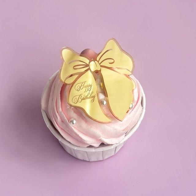 Acrylique Rose Or Rose Joyeux Anniversaire Gâteau Topper Bowknot Forme Cupcake Toppers Gâteau Décoration pour la Fête D'anniversaire De Maman Dessert