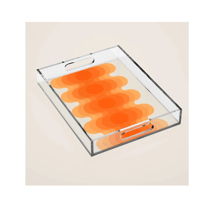 Plateau de service en acrylique à motif imprimé feuille, idéal pour le Nouvel An, pour servir pâtisseries, bonbons et chocolats