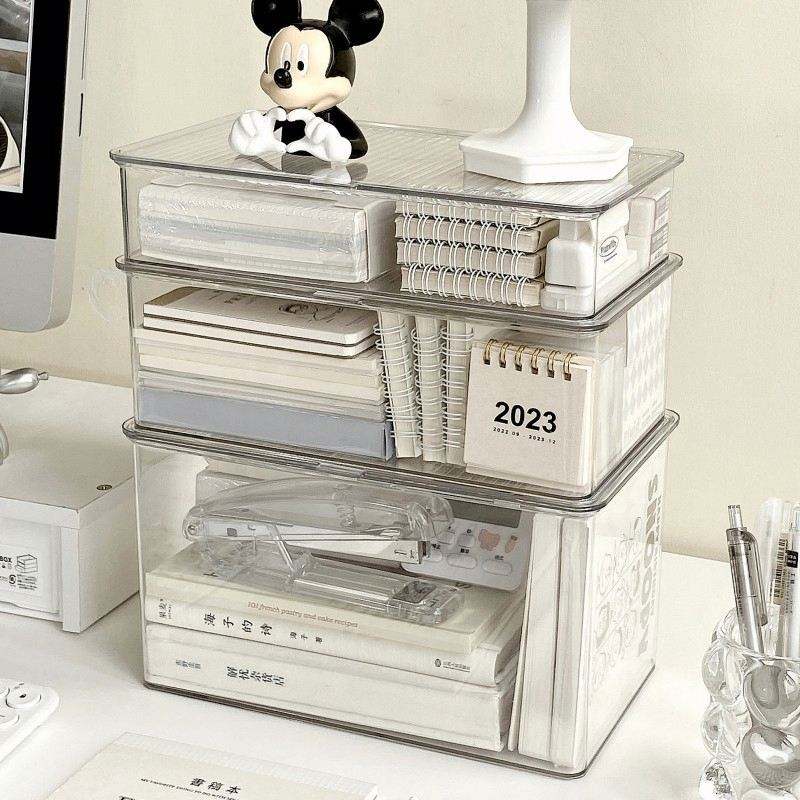 Boîte de rangement de papeterie en acrylique Boîte de tri claire pour articles cosmétiques divers Collations Étudiant Bureau Ruban adhésif Bloc-notes Organisateur
