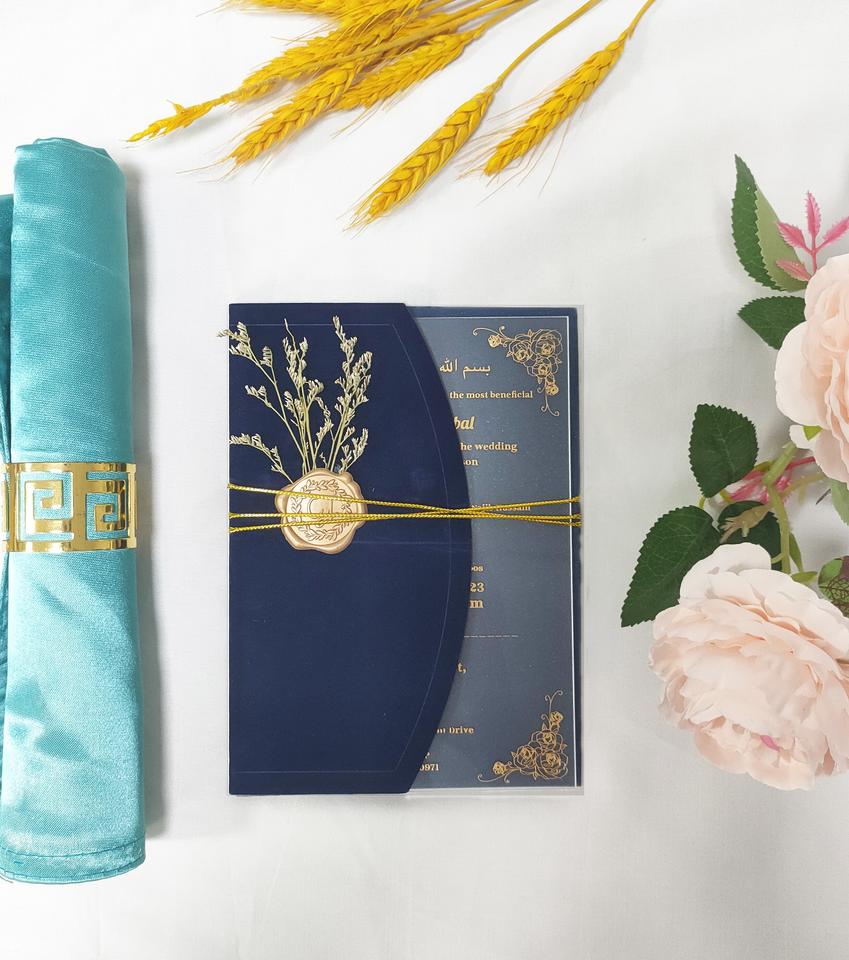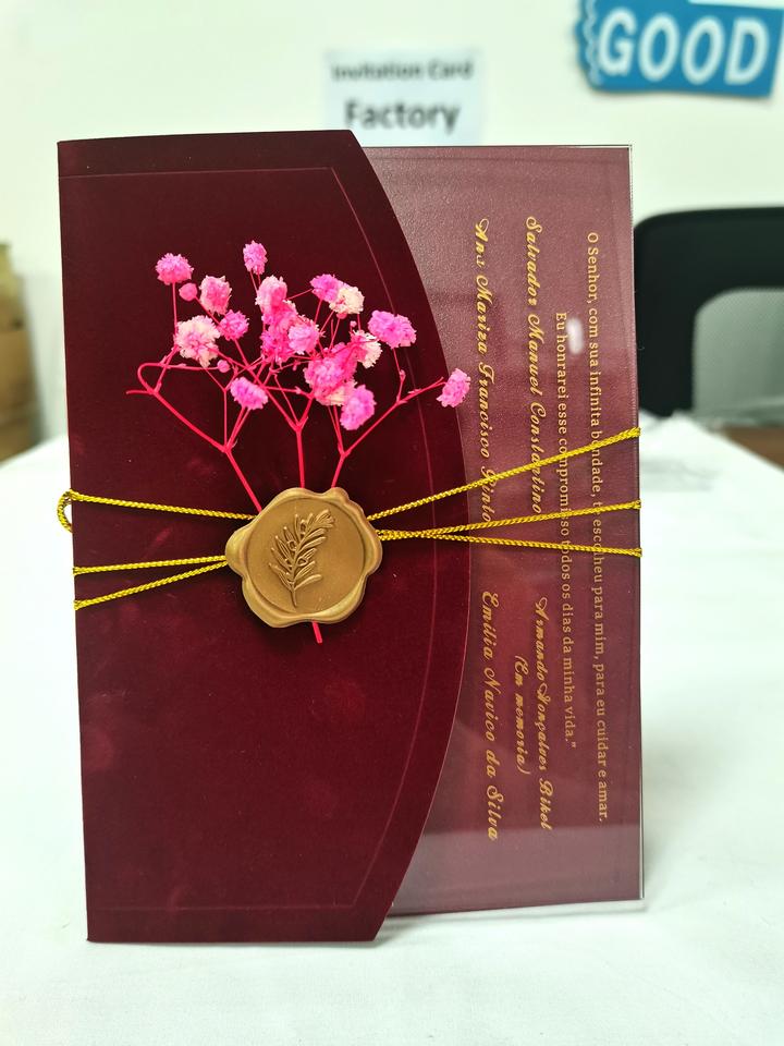 Inclure:1-2mm épaisseur acrylique carte + enveloppe + cire sceau + fleurs séchées