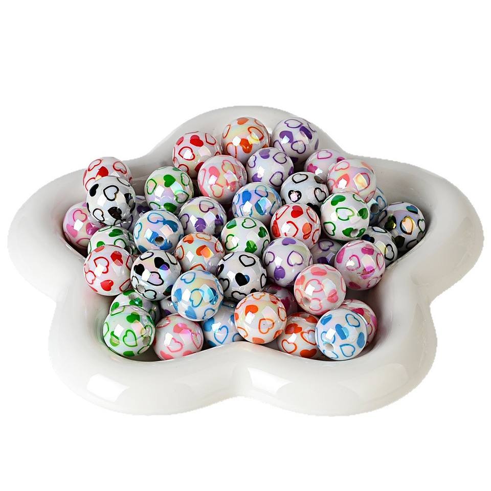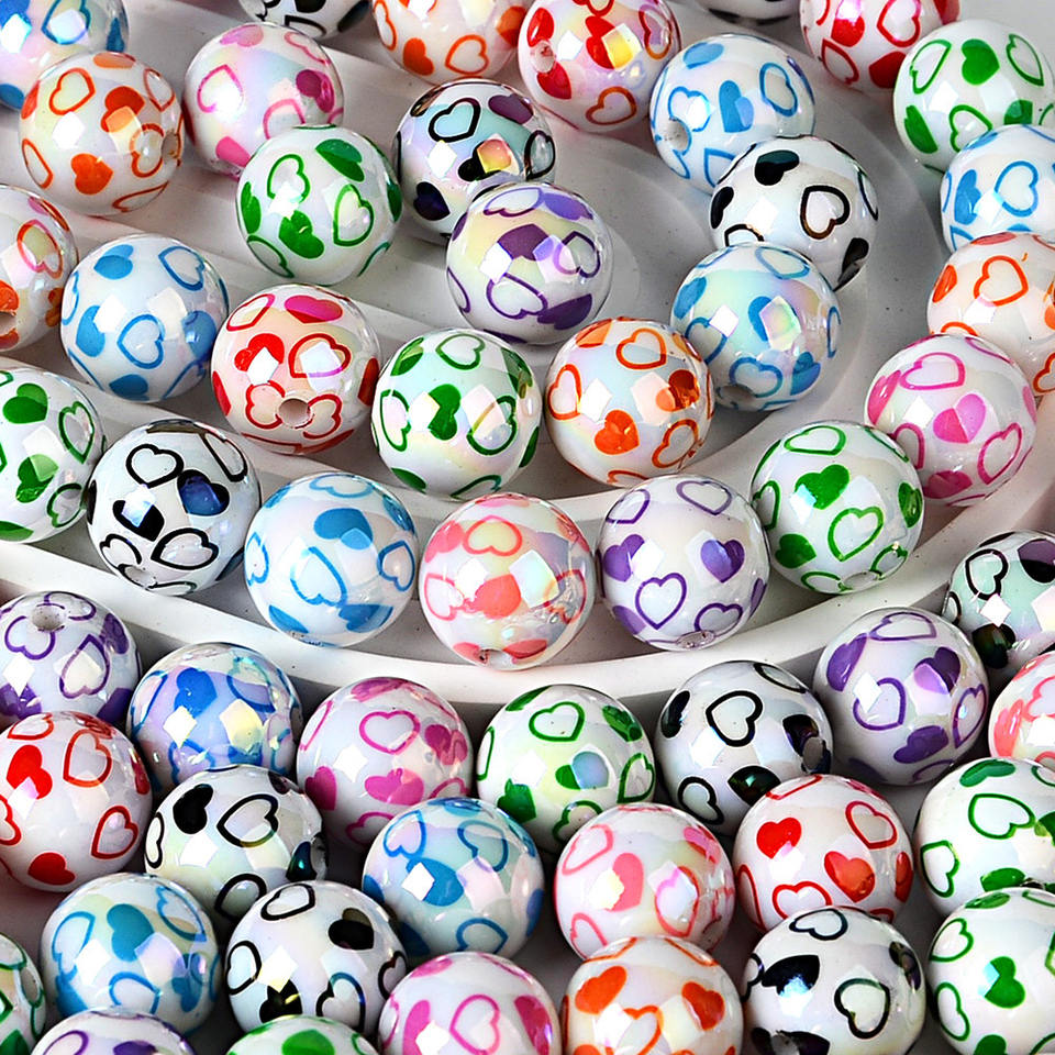 Perles en acrylique 16 mm à motif vache, impression couleur, double cœur, trou droit, pour bijoux DIY, chaîne de téléphone portable, porte-clés