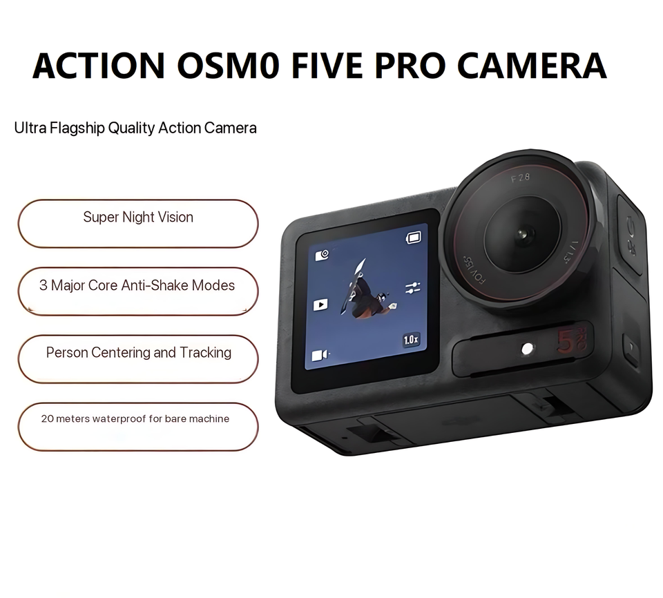 Caméra sportive Action Five Pro, écran tactile, longue durée de vie de la batterie, étanche 20m, grand angle 155°, capteur CMOS, WiFi, MicroSD 64 Go