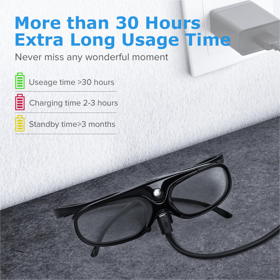 Lunettes 3D Active Shutter DLP Link clip compatible pour une expérience de visualisation 3D