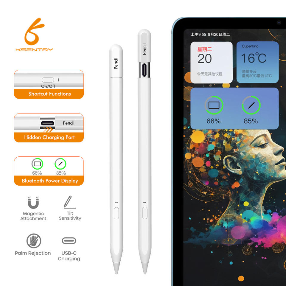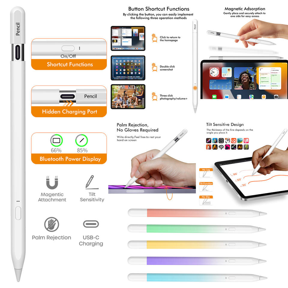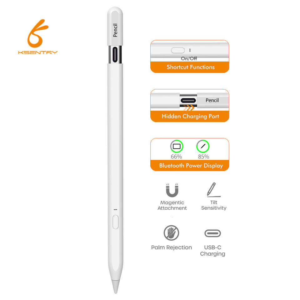 Stylet actif pour iPad, compatible avec Apple Pencil, avec attraction magnétique et rejet de la paume pour écran tactile