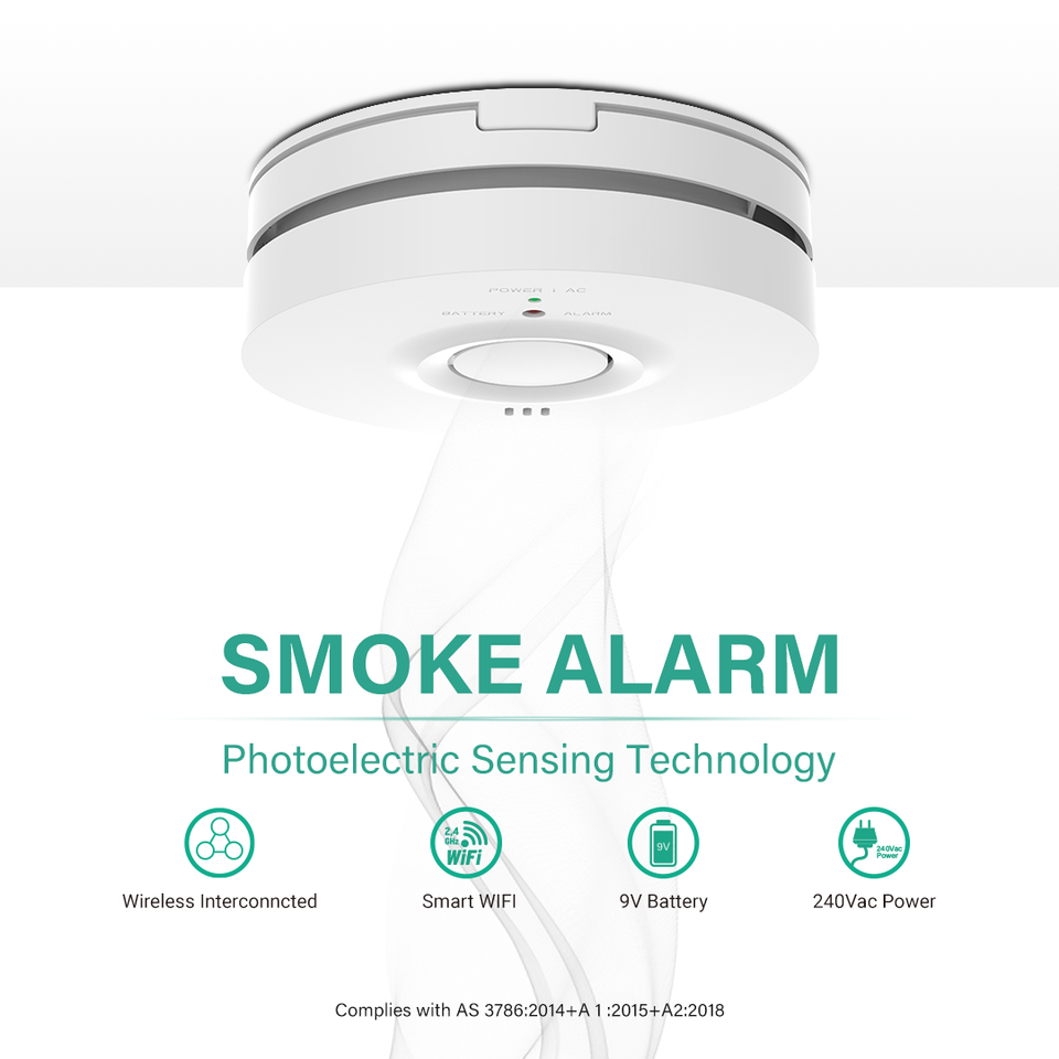 Détecteur de fumée photoélectrique filaire et sans fil RF interconnecté Activfire AS3786 Australie avec télécommande, alarme 85 dB, blanc ABS