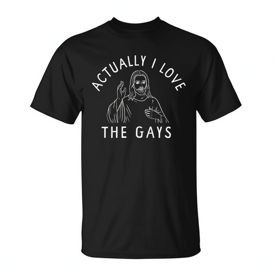 T-shirt « Je suis d'ailleurs un fan des gays » inspiré de la religion chrétienne avec citation de Jésus – Vêtement promotionnel