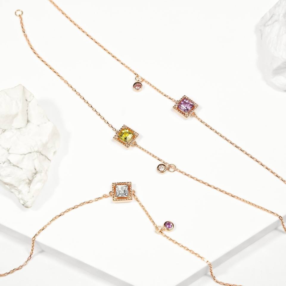 Pierres précieuses:Péridot en forme carrée + S50 + Y50 + S50 + Y50 + Y50 + S50 + Y50