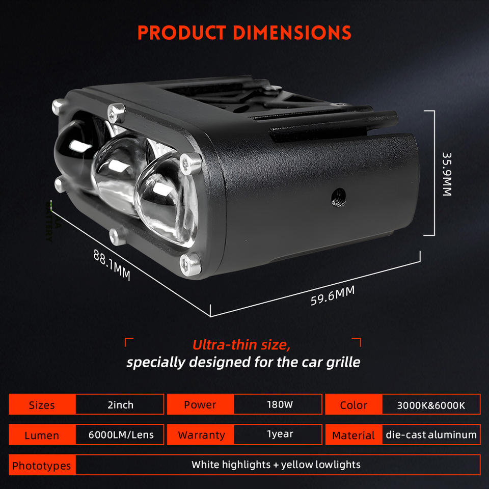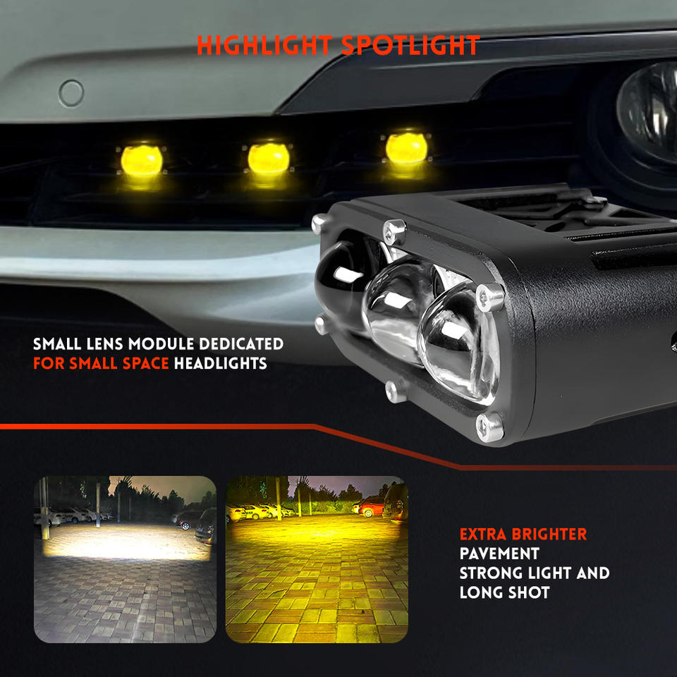 Mini projecteur supplémentaire Spot 3 pouces 12v à montage encastré Lumière tout-terrain à double couleur LED Pods Effet clignotant ambre pour camion SUV Voiture