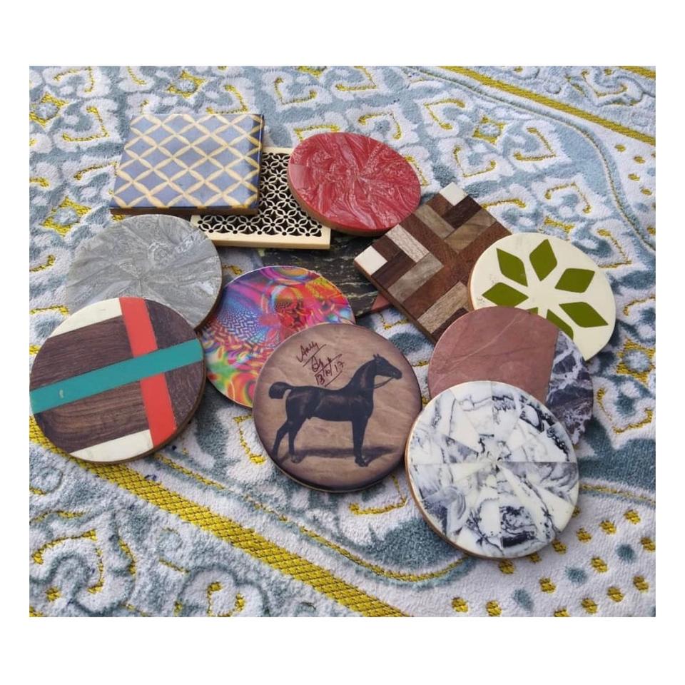 Adresse Craft Form Inde sous-verres en bois fait maison résine et bois tasse à thé boisson sous-verres ensemble de 4 pièces nouveau Design prix de gros
