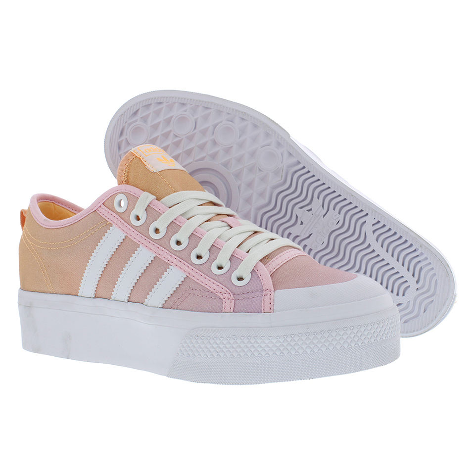 Chaussures Adidas Nizza Platform pour femmes Couleur : Blanc nuancé/Rose clair/Orange acide 100% authentiques