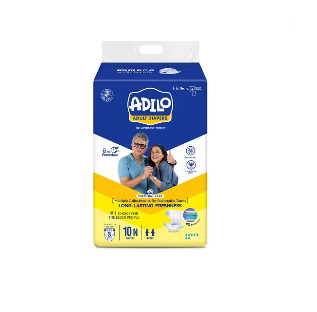 Couche pour adulte Adilo, style à bande ouverte, douce, confortable, facile à porter, haute absorption, ajustement sécurisé, protection quotidienne