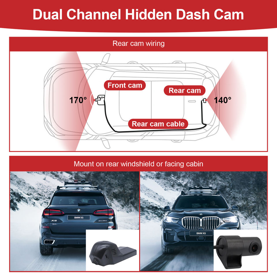 Caméra de tableau de bord Adinkam avec WIFI intégré pour Audi 2019-2024 A1 A3 A4 A5 A6 A7 A8 Q2 Q3 Q5 Q7 Q8 RS S S5 S8 SQ5 SQ8 TT