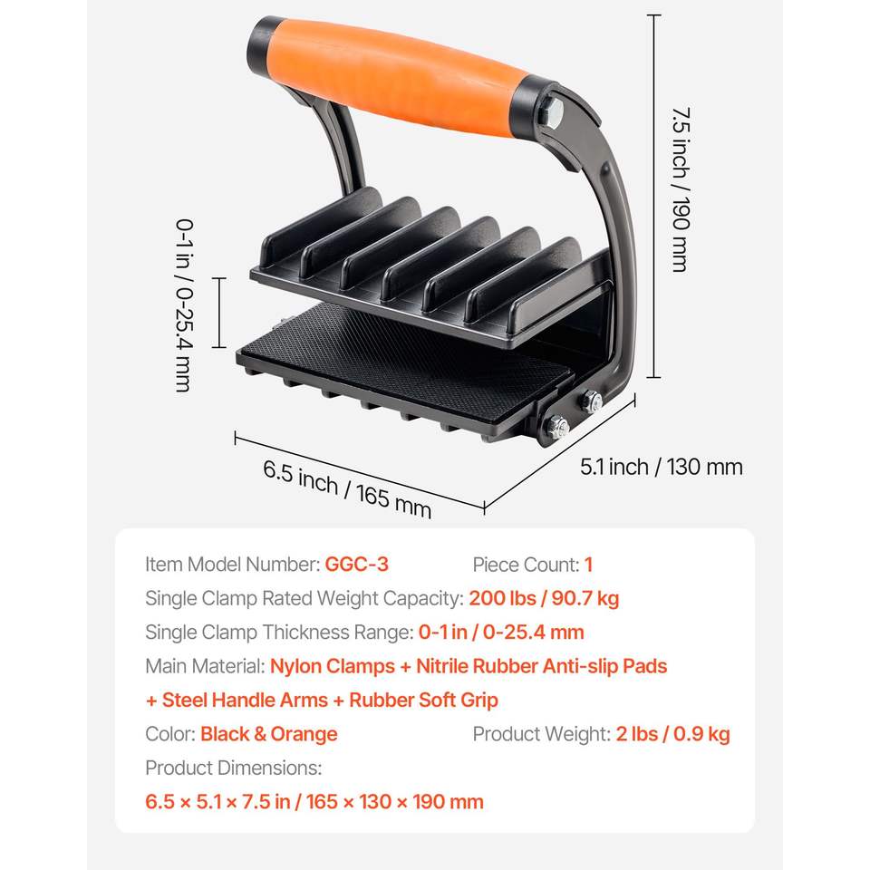 Outil de transport réglable pour plaques de plâtre de 0 à 1 pouce d'épaisseur, capacité de 200 lb, chariot à simple pince pour panneaux de contreplaqué et plaques de plâtre