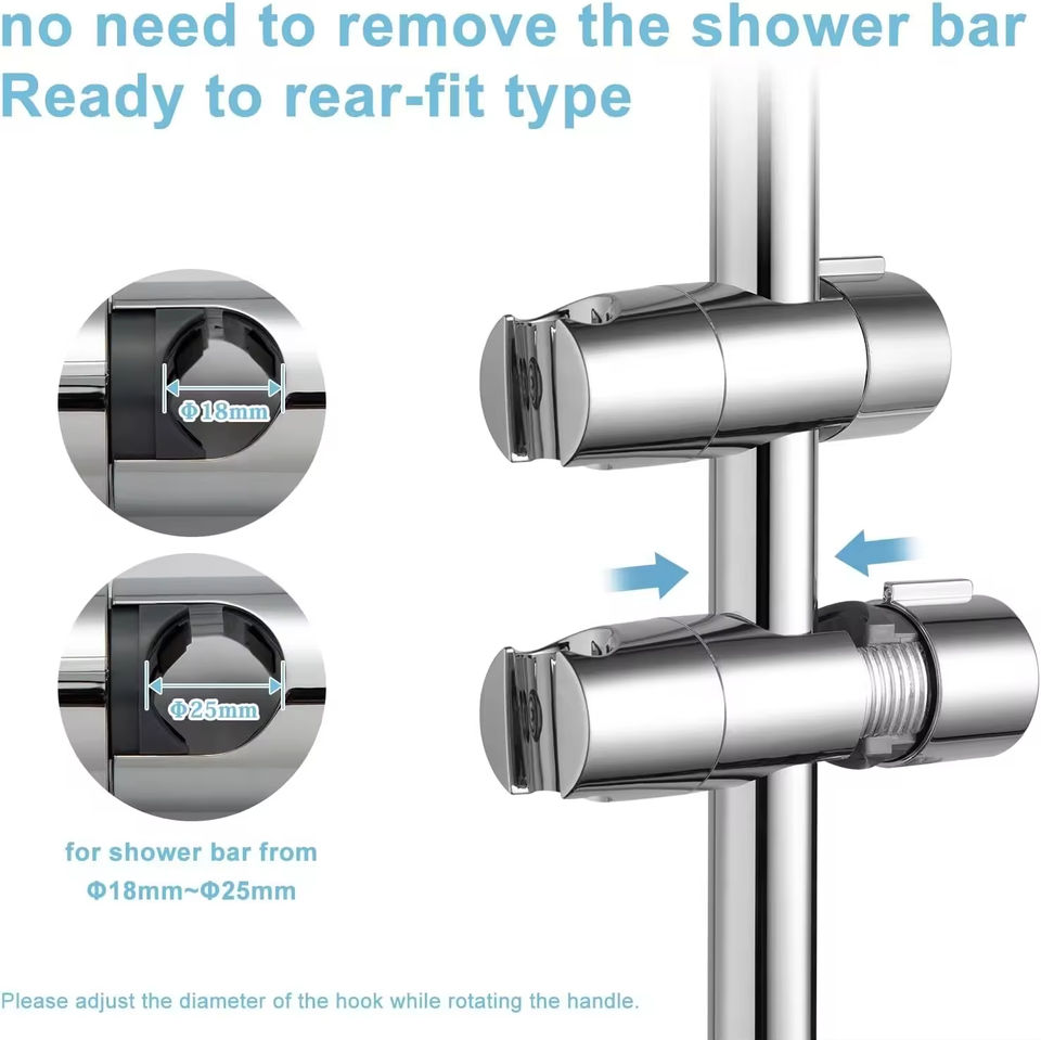 Support de pomme de douche à main réglable de 18 à 25mm de diamètre Pince coulissante de remplacement détachable pour barre coulissante universelle pour salle de bain ABS