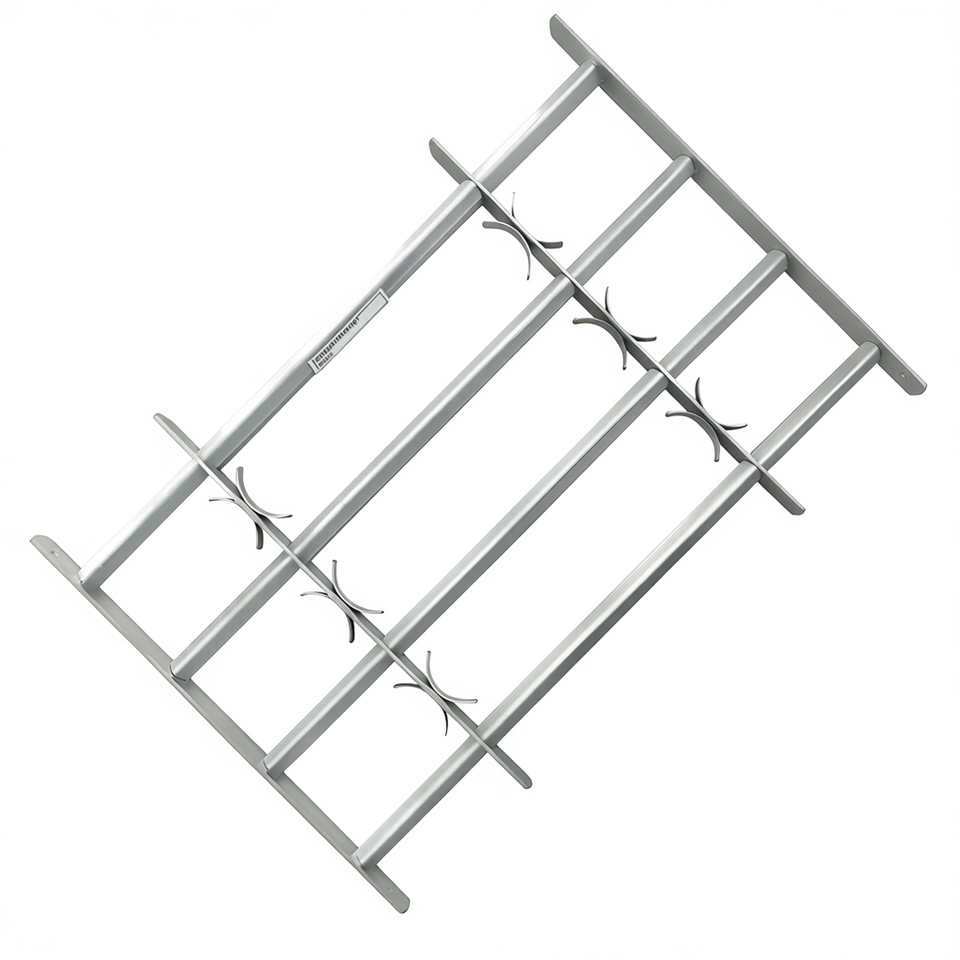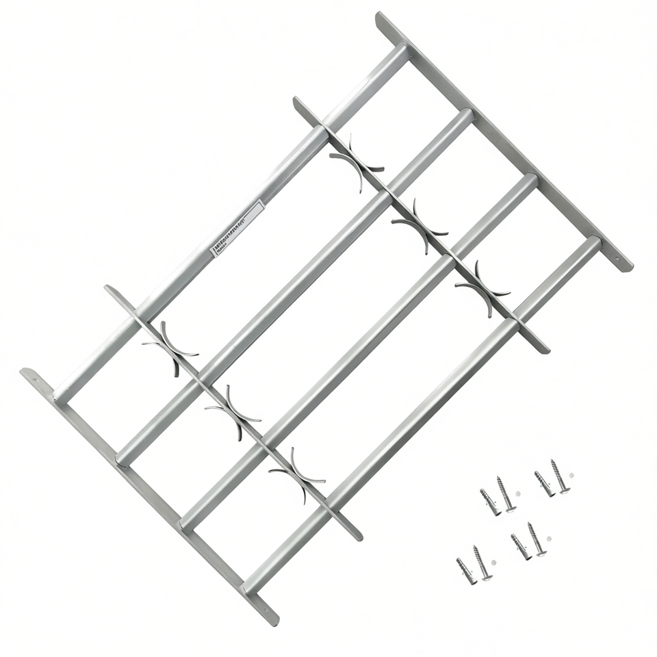 Grille de sécurité réglable à 4 barres transversales pour fenêtres de 27,6 à 41,3 pouces, design industriel en acier inoxydable, installation facile