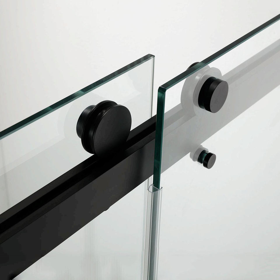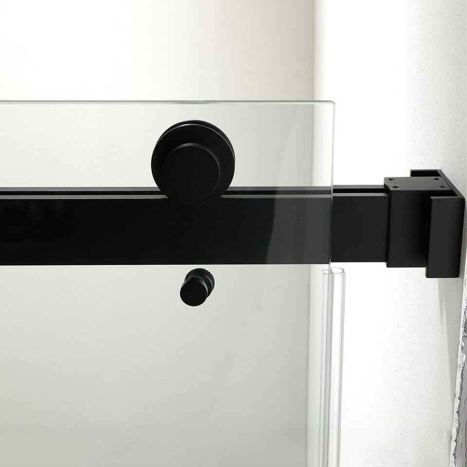 Réglable 60 po. W X 58 po. Porte de douche en verre H sans cadre avec kit de douche noir complet et porte coulissante en verre