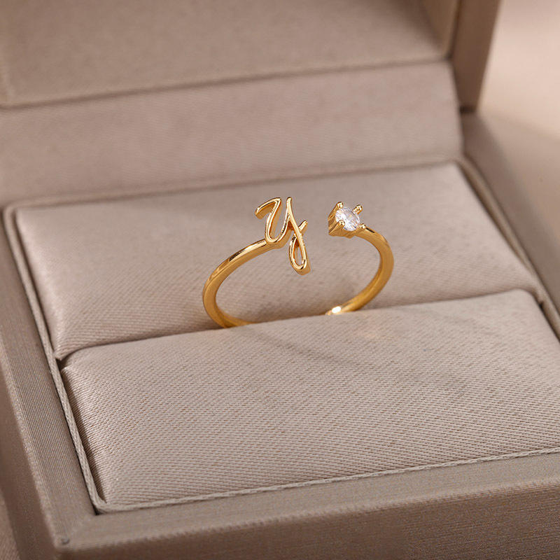 Bague ajustable avec initiale en alphabet - Bande ouverte délicate en CZ - Bijou personnalisé pour un usage quotidien