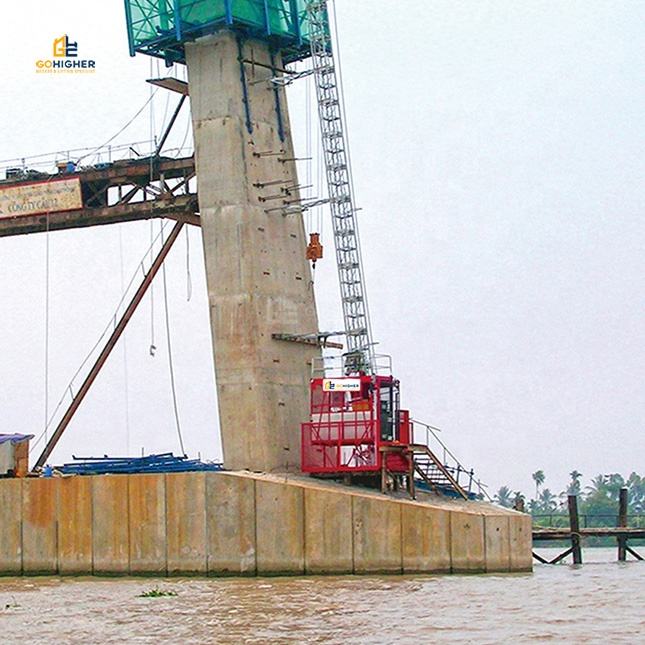 Monte-charge de chantier à angle réglable 0-15 degrés pour le levage de passagers et de matériaux en construction de ponts et de tours