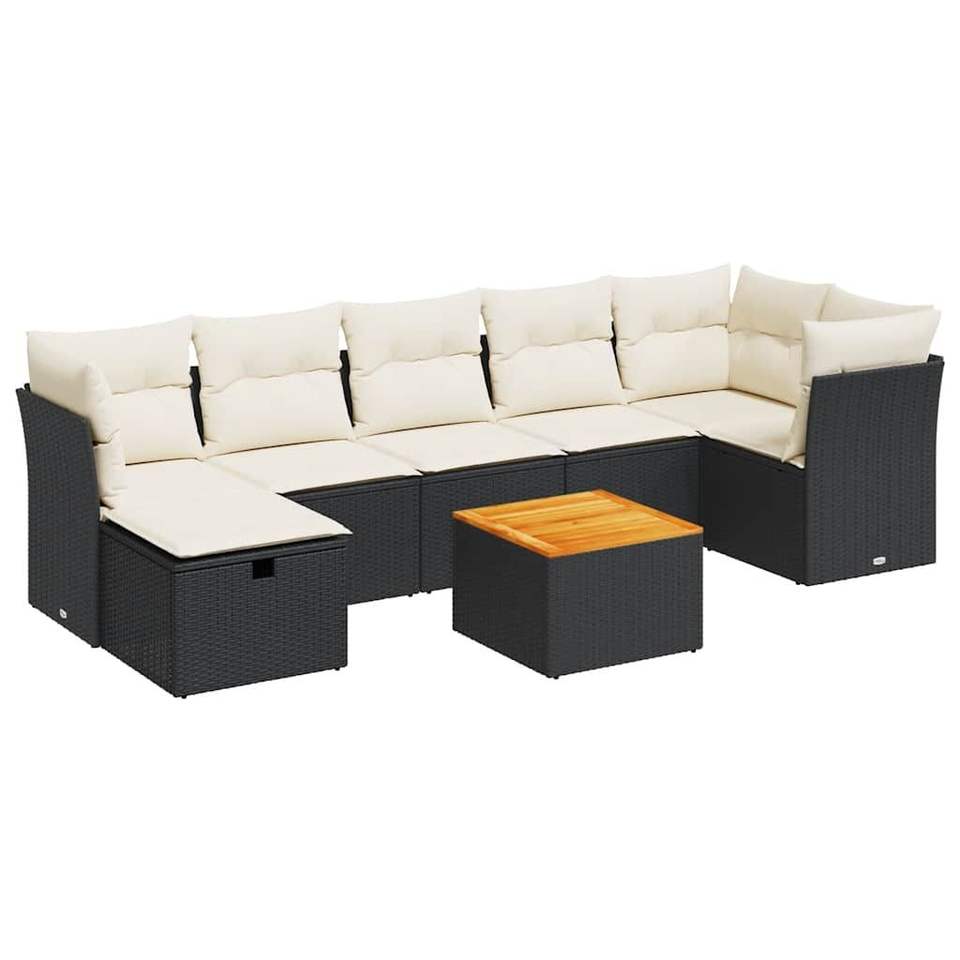 Ensemble de canapés de jardin en rotin PE noir avec accoudoirs réglables, grands ensembles de jardin