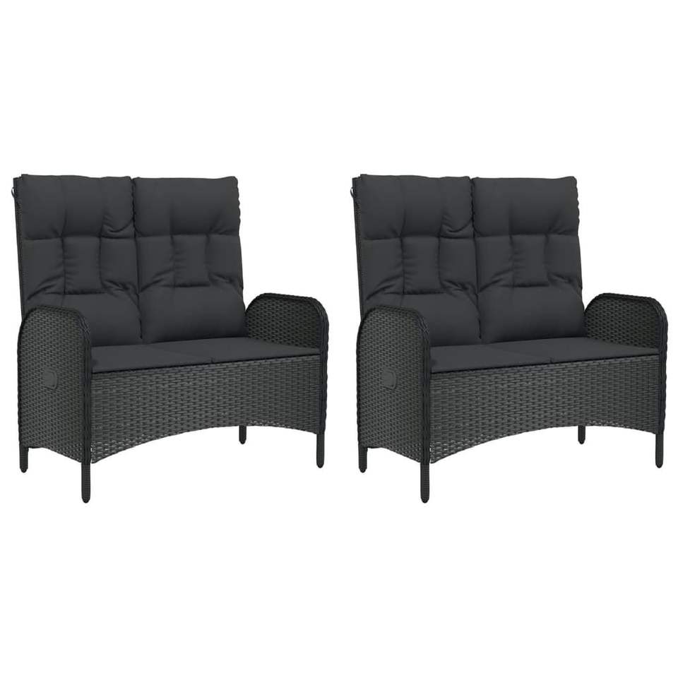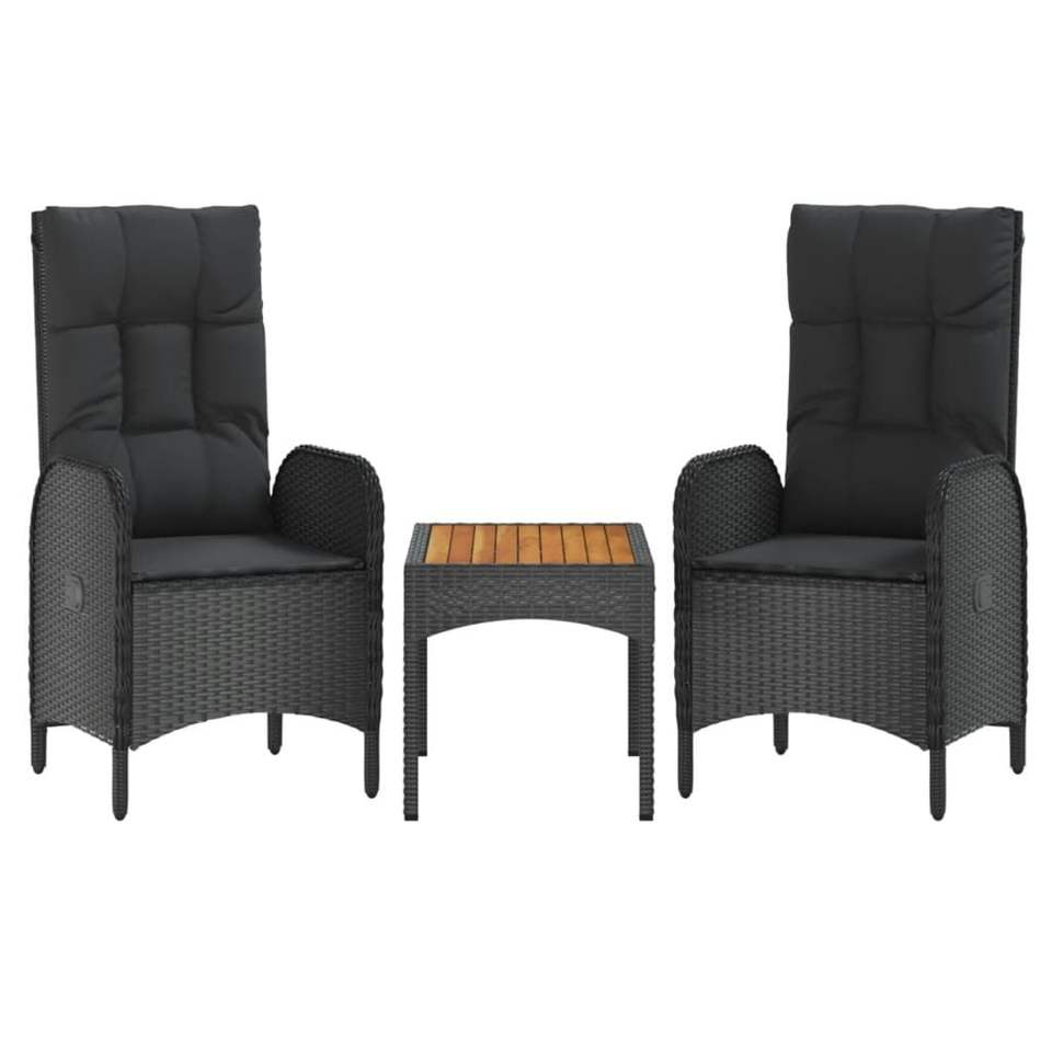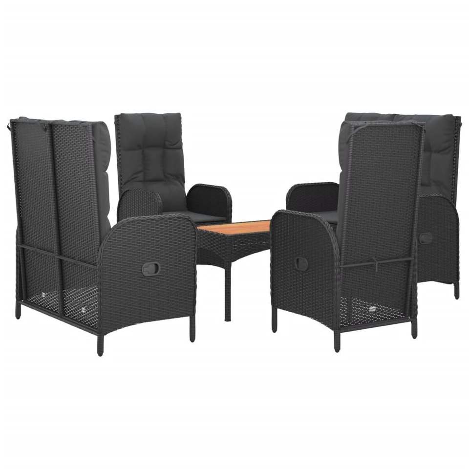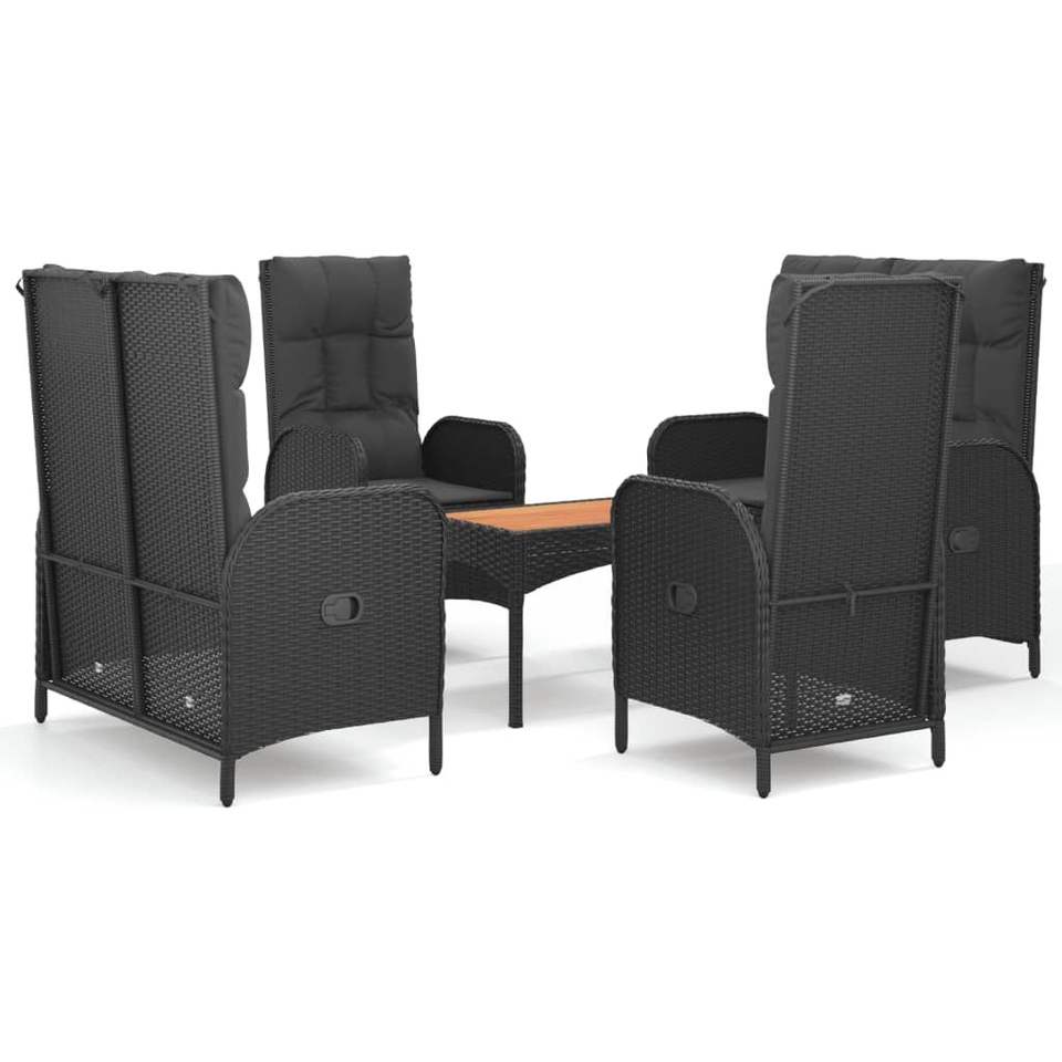 Ensemble de salle à manger de jardin en polyrotin noir avec accoudoirs réglables, grand mobilier de patio