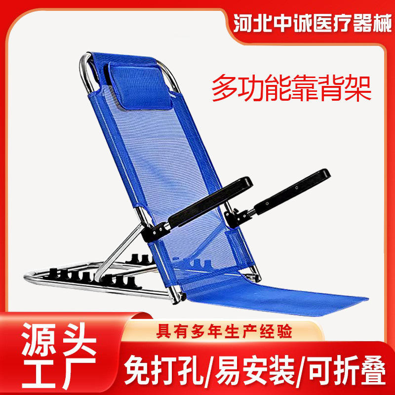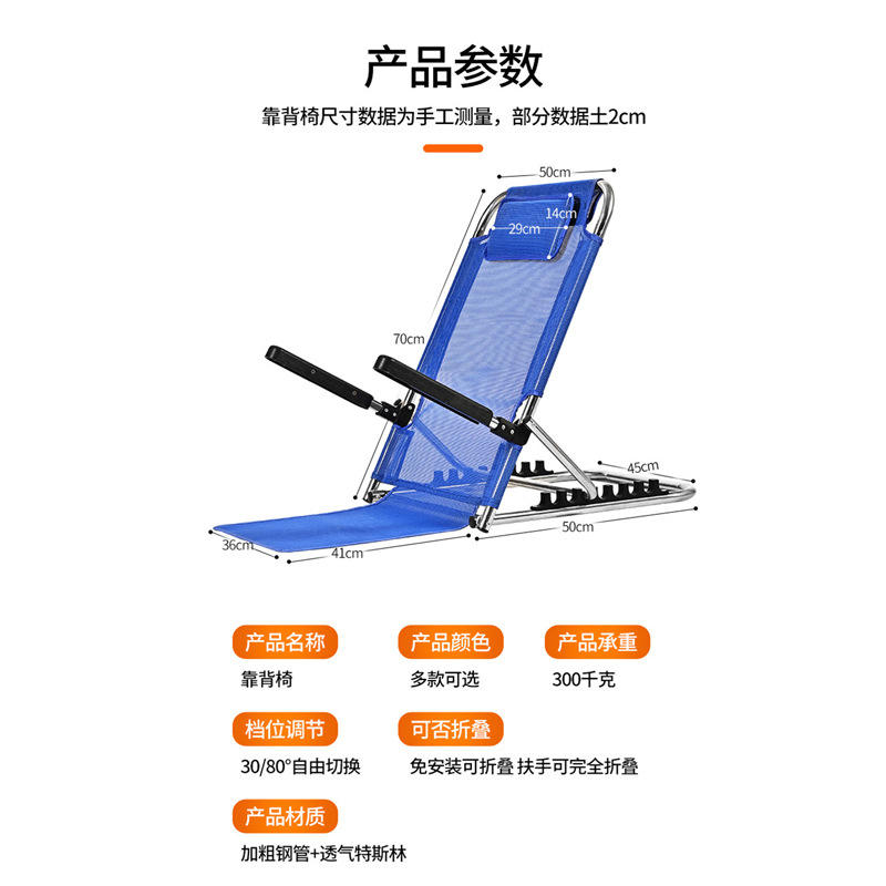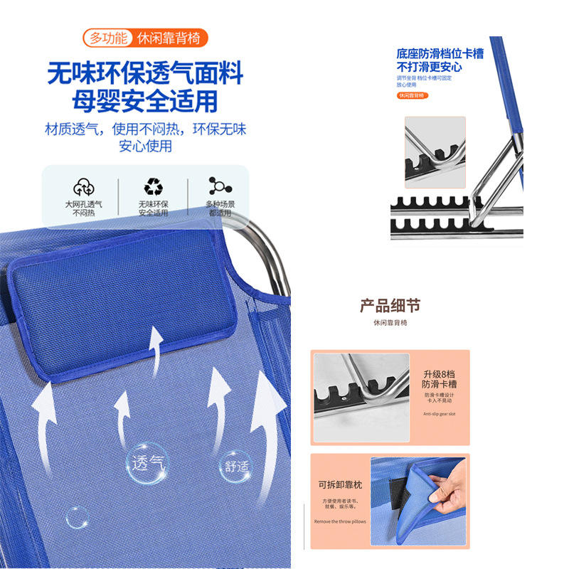 Chaise à dossier réglable avec structure en acier, support de lit de dortoir, design en maille bleue