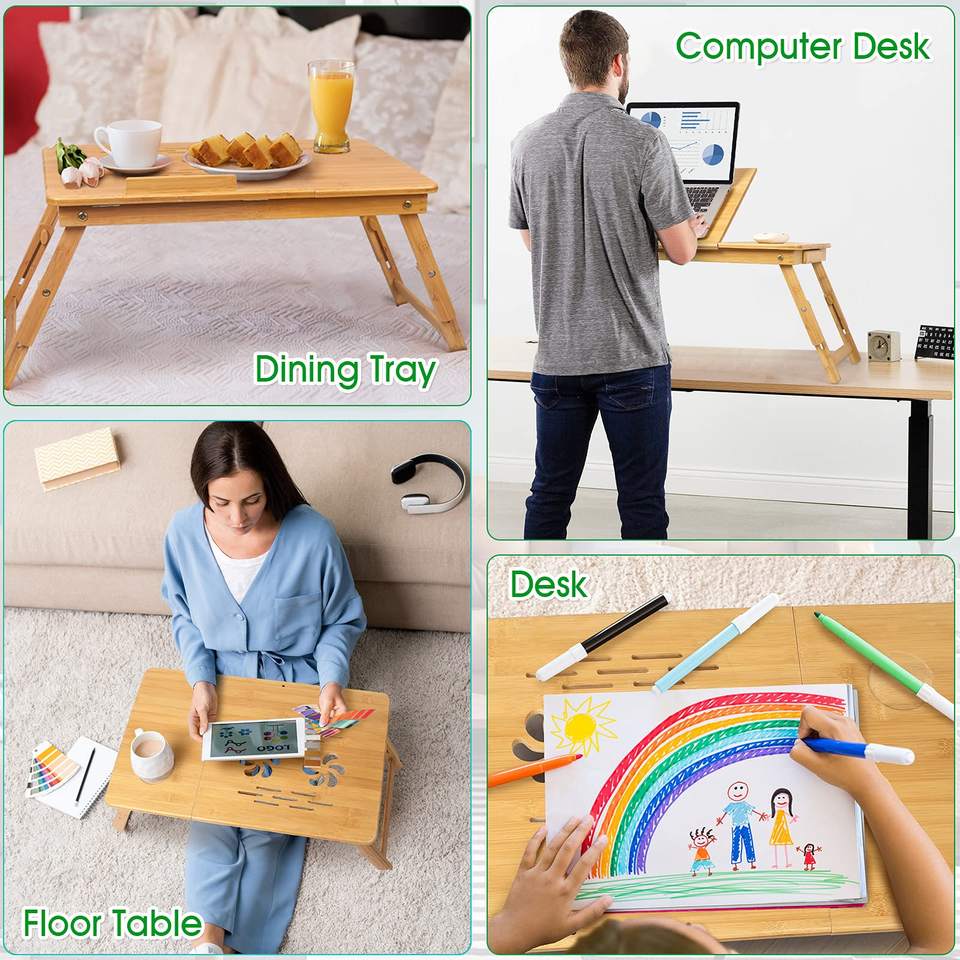 Bamboo Laptop Table, Floor Lap Desk, Notebook Stand, Bed Tray Table