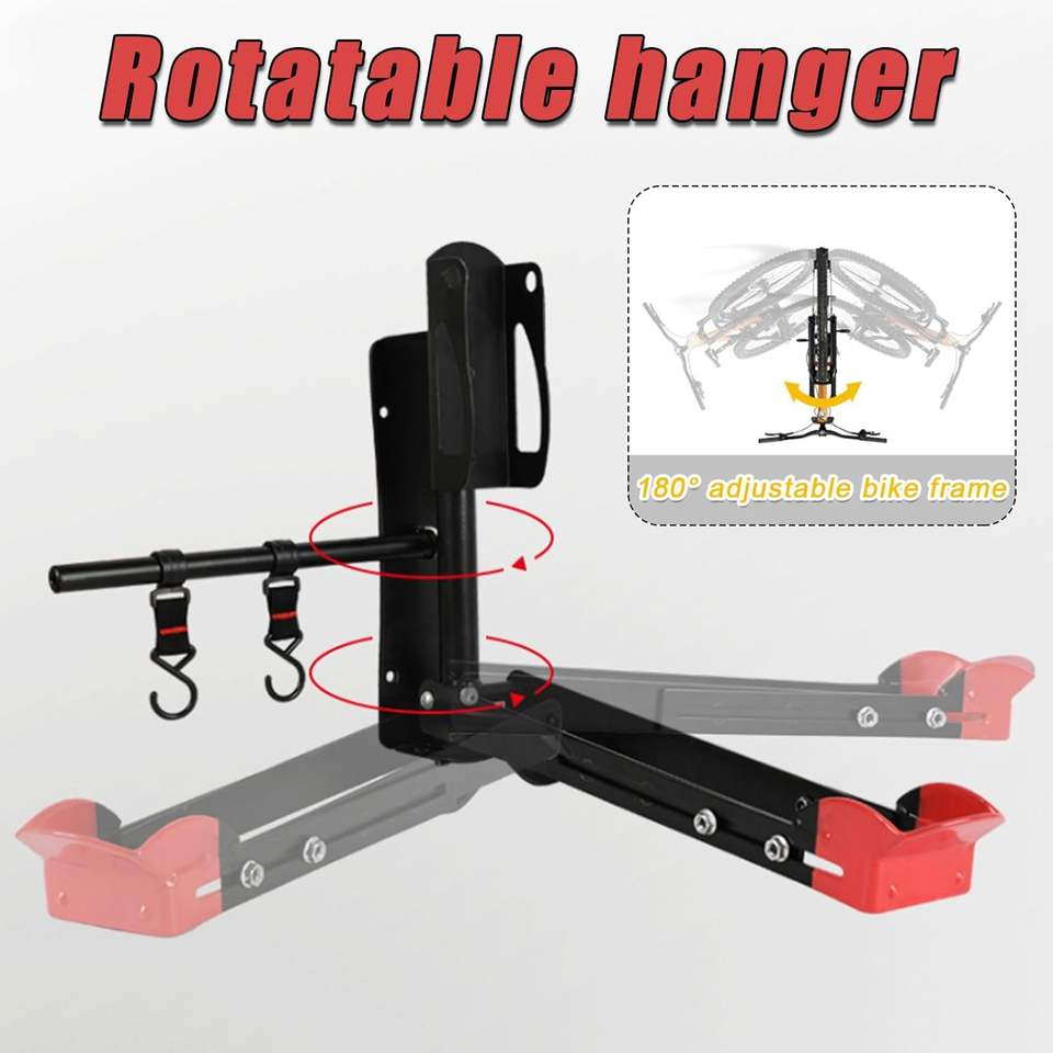 Support mural ajustable pour vélo Rangement vertical Support de garage Crochet pivotant et cintre