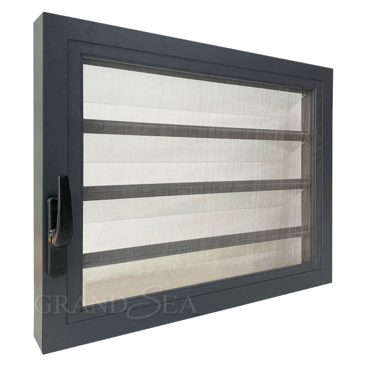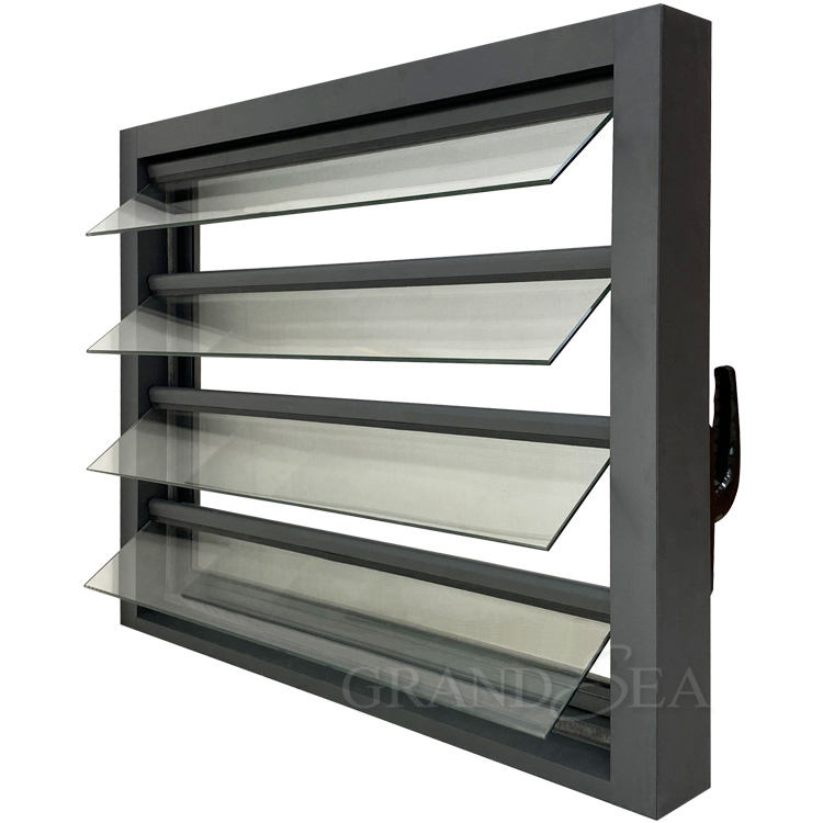 Fenêtre à persiennes en aluminium à lames réglables en verre trempé résistant aux ouragans avec moustiquaire