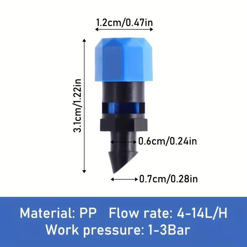 Goutteur bleu réglable 0-260L à compensation de pression pour l'irrigation agricole et de jardin