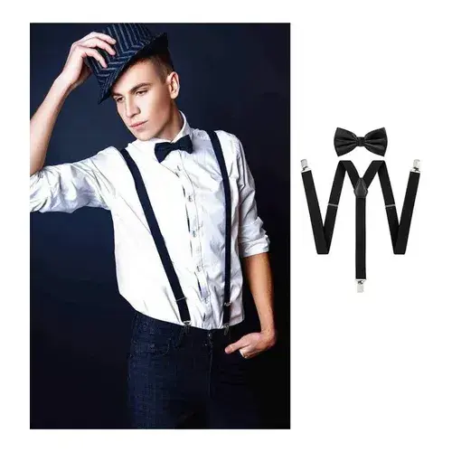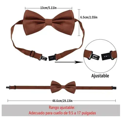 Ensemble nœud papillon réglable avec bretelles 2,5 cm en polyester, couleur unie, durable, accessoire formel unisexe pour adulte