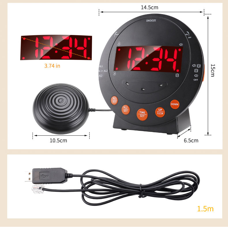 Main Function:When doorbell and phone rings, the alarm clock make sound,