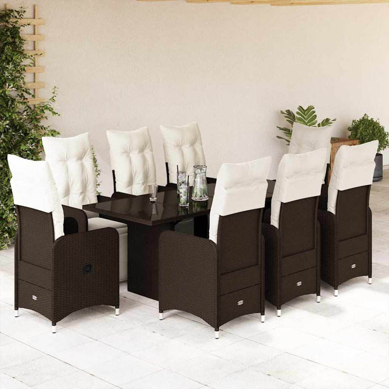 Ensemble de bistrot réglable en rotin PE marron avec repose-pieds confortables pour le jardin extérieur