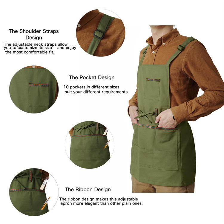 Tablier à boutons réglables pour femmes hommes artiste peinture poterie jardin cuisine chef de cuisine 4 poches