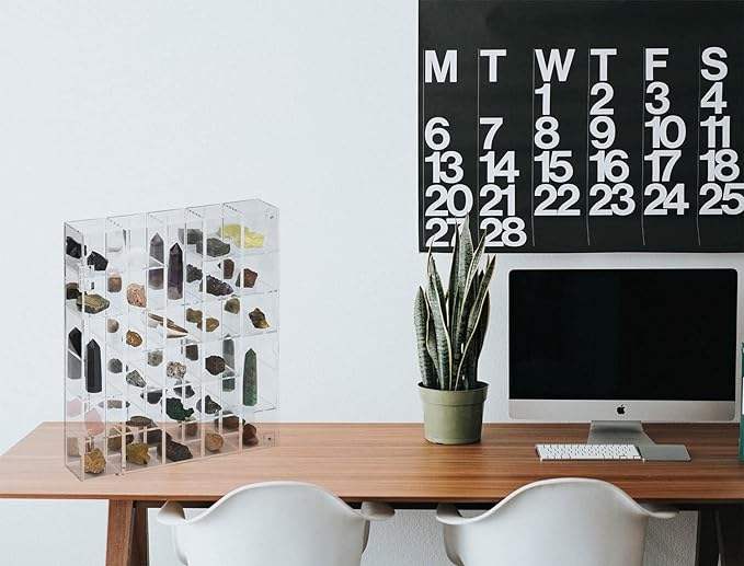 Boîte de collecte en acrylique transparent réglable pour usage domestique Vitrine de roche écologique pour pierres de flèche de roche Cristal minéral