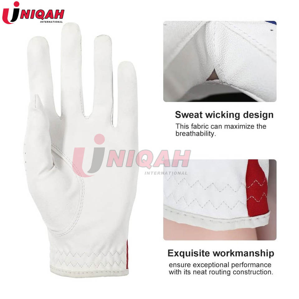 Gants de golf à fermeture réglable pour gauchers hommes femmes motif drapeau américain cuir synthétique Cabretta Durable confortable Golf