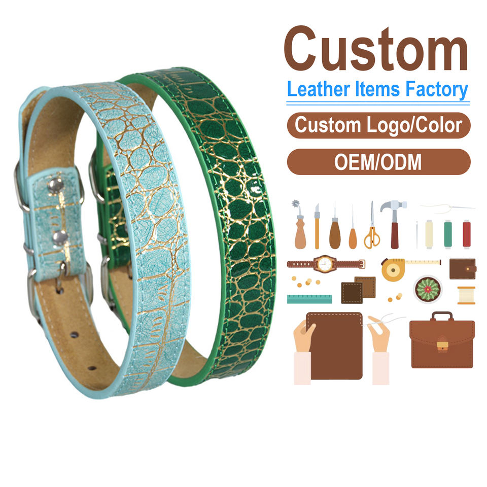Collier pour animaux de compagnie réglable à motif crocodile, accessoire pour chien/chat en cuir microfibre, logo personnalisé en usine, laisse pour animaux de compagnie