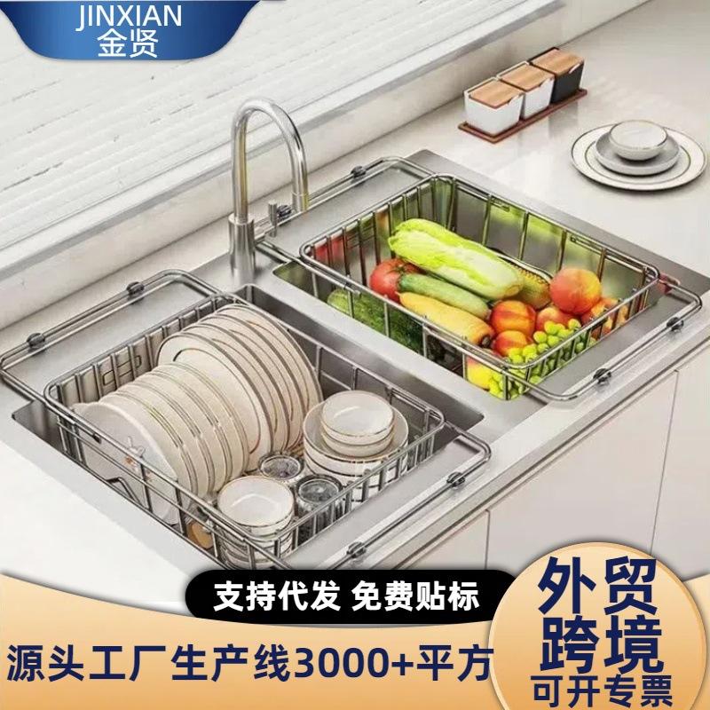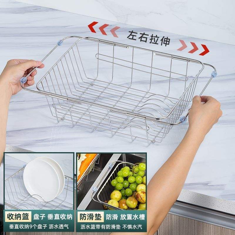 Égouttoir à vaisselle réglable taille L, panier de drainage carré pour évier ou comptoir de cuisine