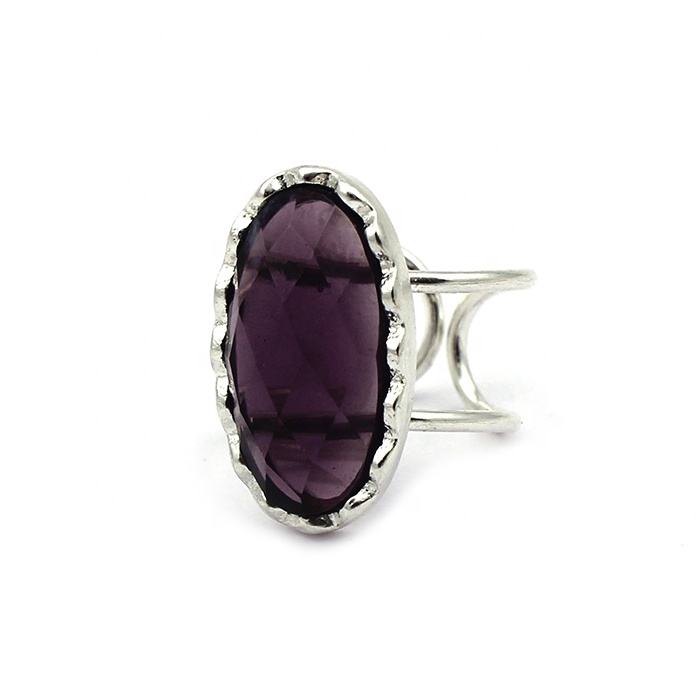 Bague Double Bande Réglable avec Belle Topaze Bleue Gemme Plaqué Or Conçu À La Main Ovale Facettes Coupe Bijoux Bagues De Mode