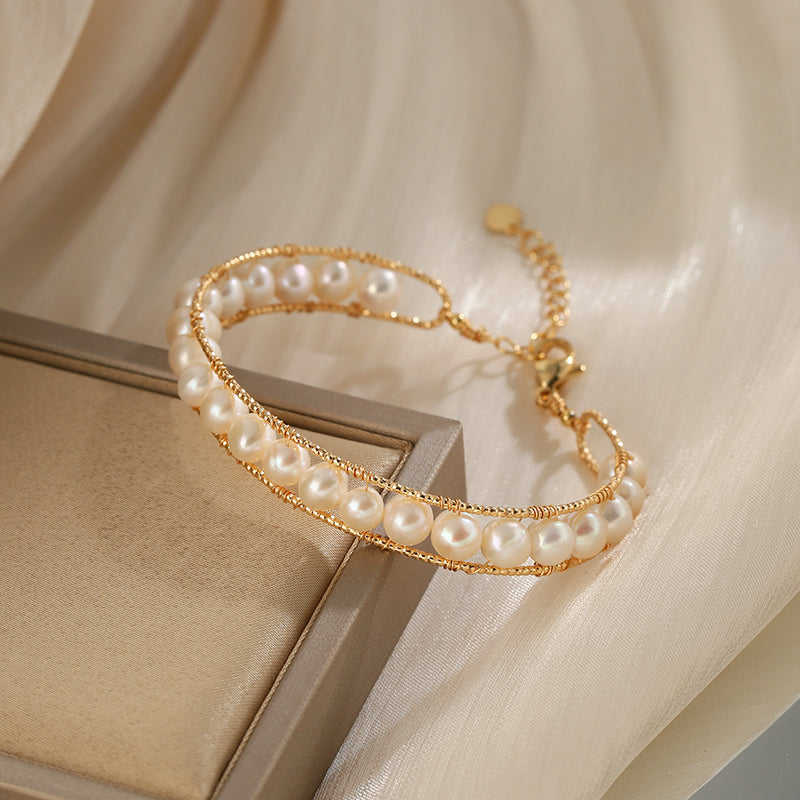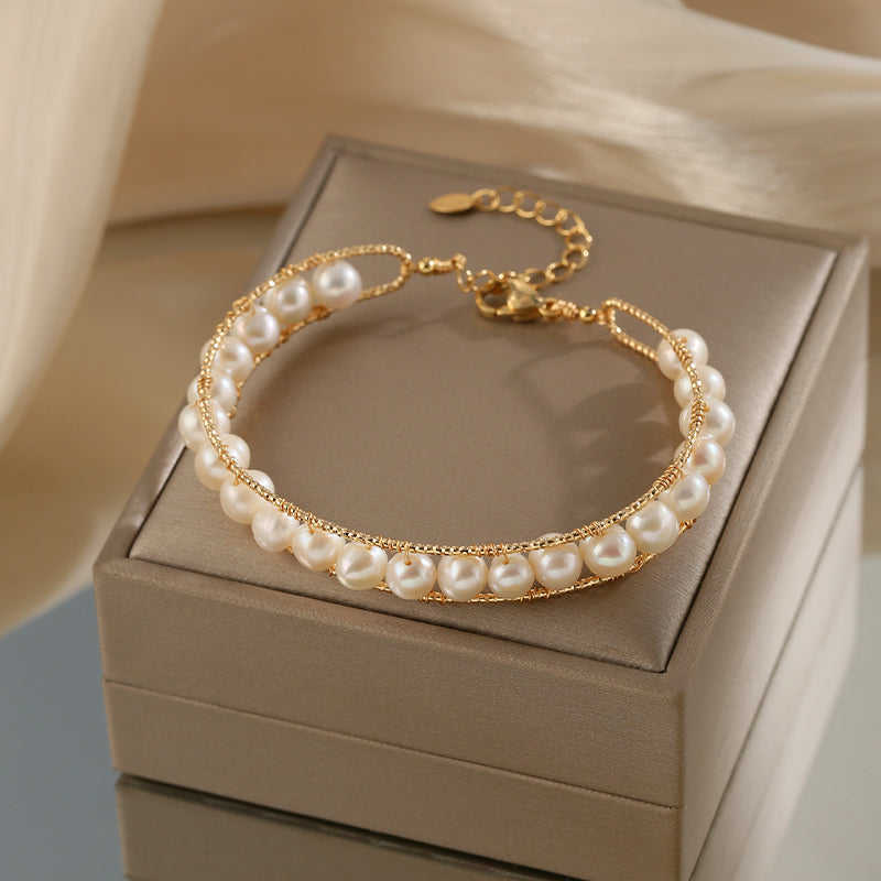 Bracelet en perles naturelles à double couche réglable WENCHI 400g Accessoire confortable et élégant