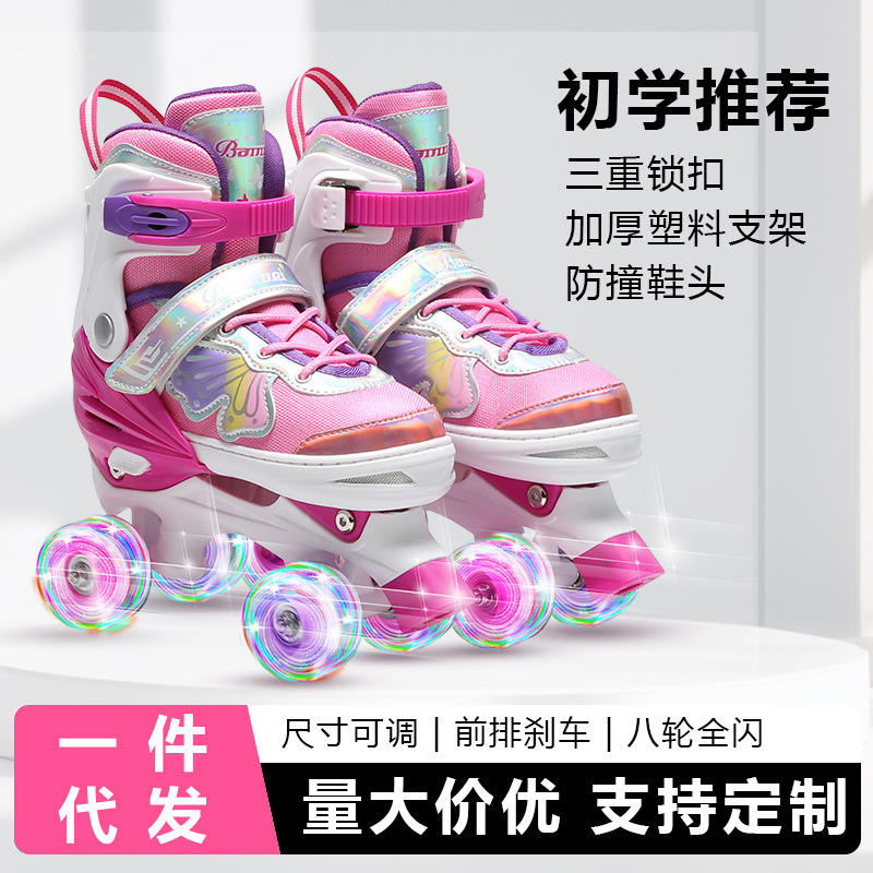 Patins à roulettes réglables à double rangée pour enfants, huit roues en PU, entièrement lumineux, unisexe, nouveau style, tailles XS27 30 S31 34 M35 38 L39 42