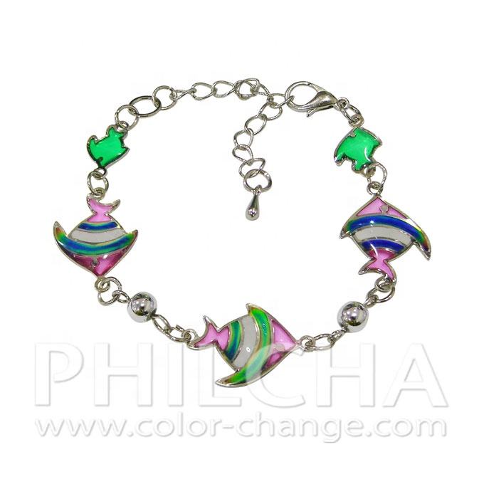 Bracelet à chaîne en métal avec breloque poisson réglable double face à changement de couleur