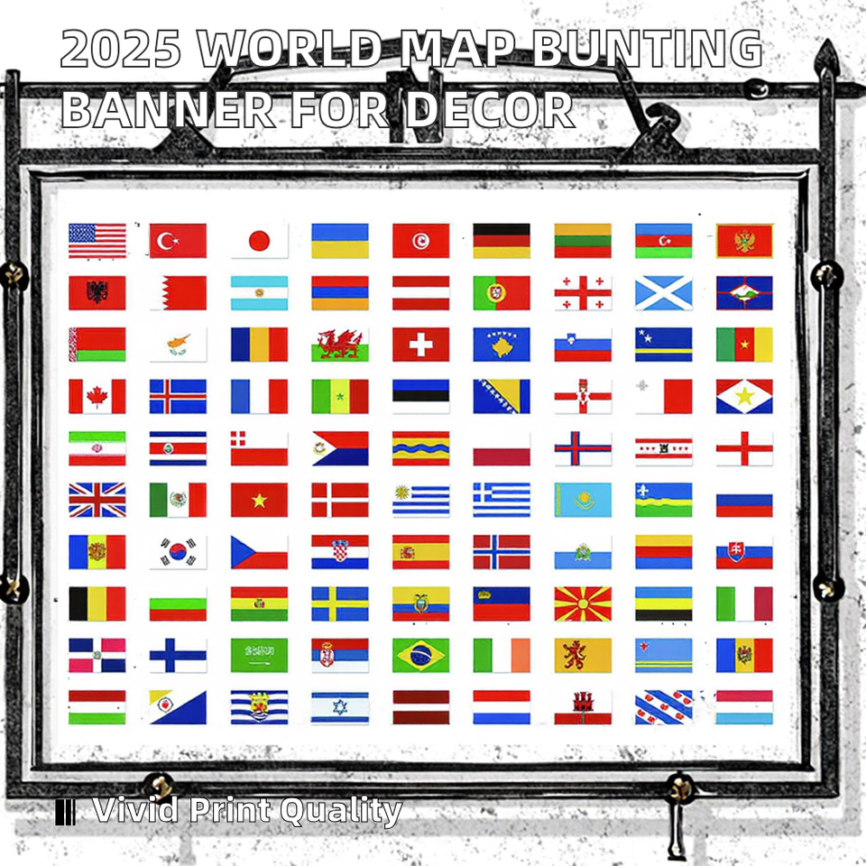 Guirlande de drapeaux en polyester double face réglable avec carte du monde pour la décoration de jardin, de bar, de restaurant ou de fête