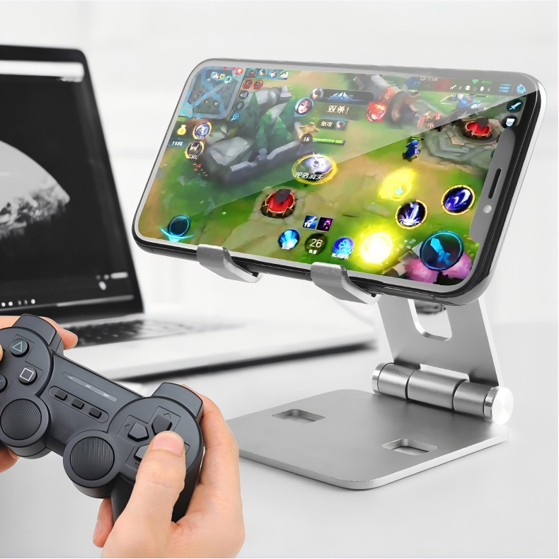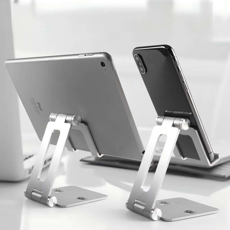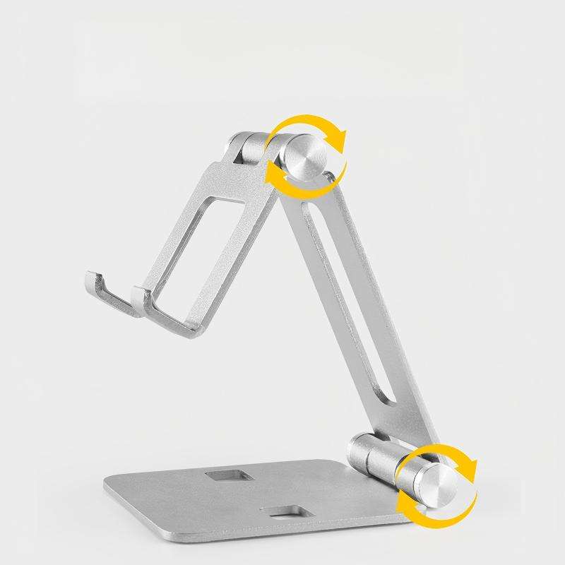 Support de téléphone portable de bureau en alliage d'aluminium réglable, pliable et flexible, design plat, support portable pour tous les téléphones mobiles et tablettes