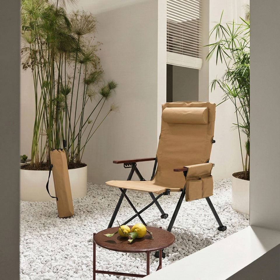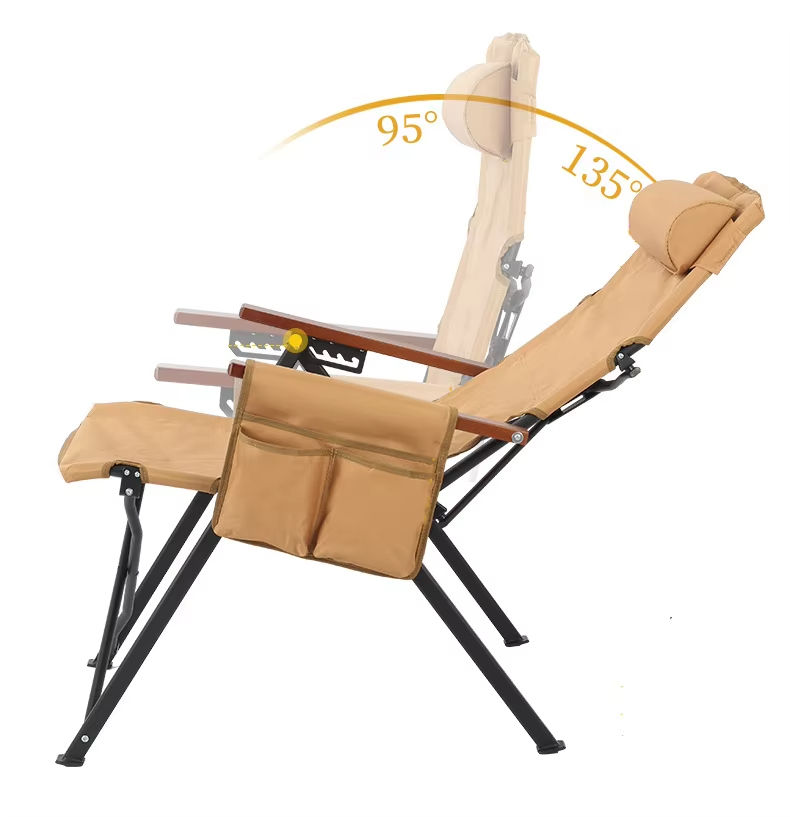 Chaise de plage pliable réglable avec appui-tête et poche latérale, chaise longue portable pour le camping en plein air, le pique-nique, la pêche et la terrasse