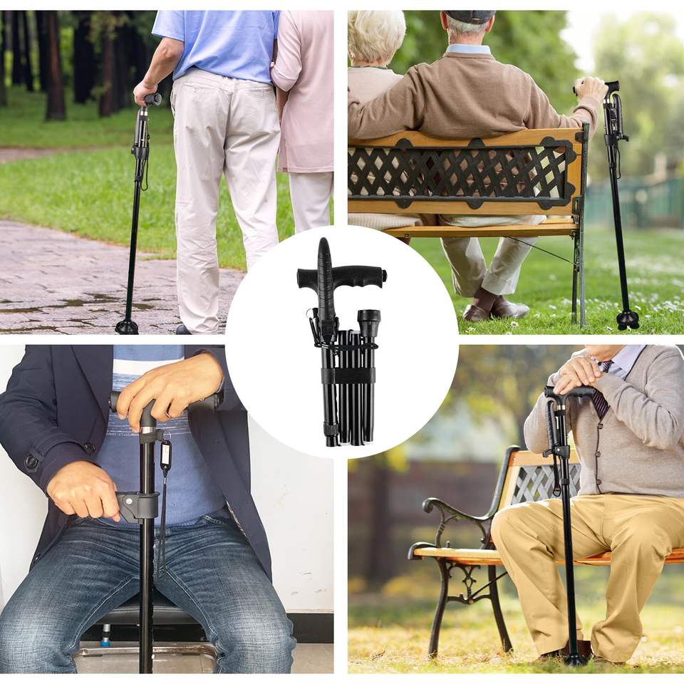 Canne Pliante Réglable avec Lumières LED Bâton de Marche pour Femmes/Hommes pour Adultes Seniors Base Stable et Léger