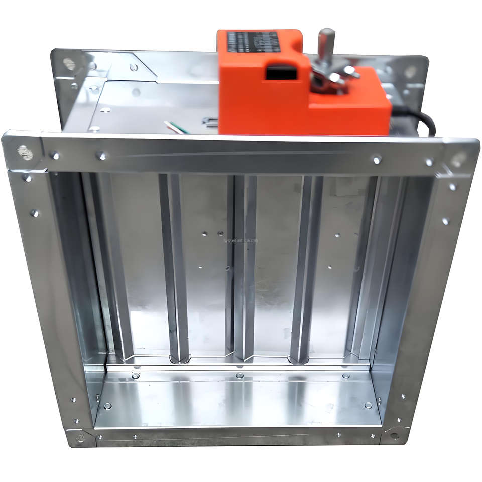 L'amortisseur d'air électrique galvanisé réglable, un composant du système de CVC, est utilisé pour le contrôle du débit d'air dans les conduits.